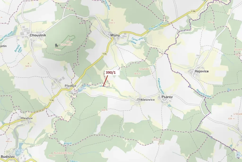 Ostatní plocha o výměře 2190 m2, parcelní číslo 390/1, podíl 1/1, katastrální území Tříklasovice, obec Psárov, obec s rozšířenou působností Tábor, okres Tábor, Jihočeský kraj.