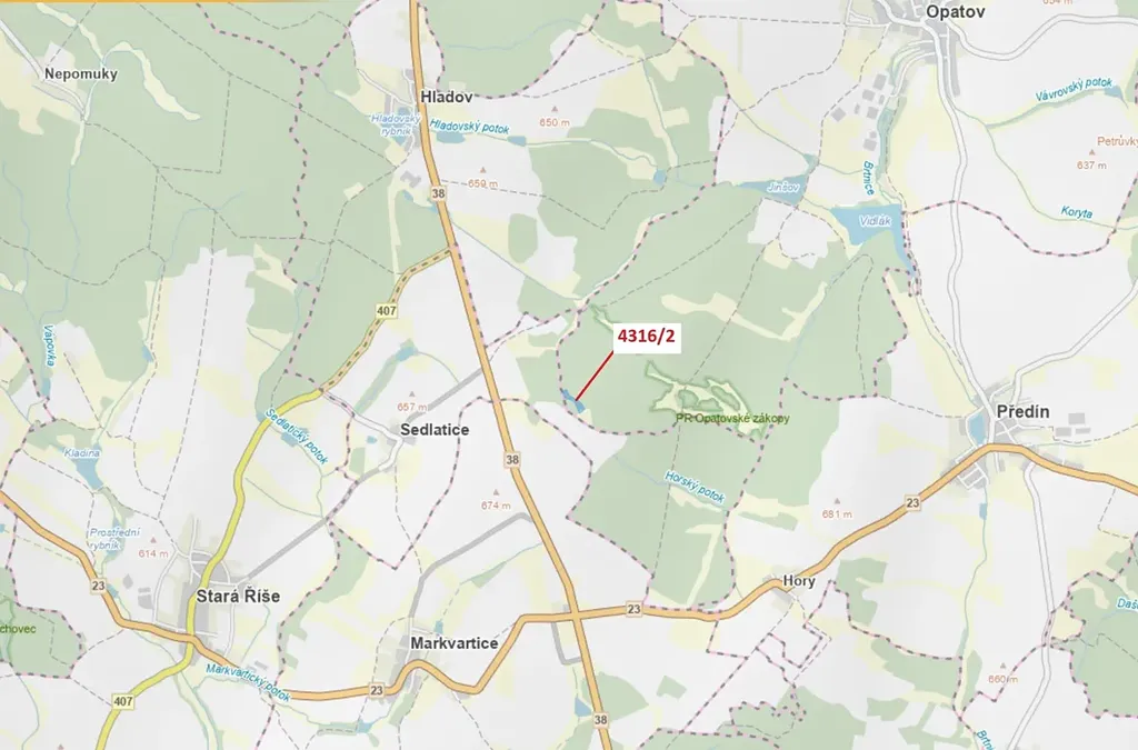 Dražba lesa, Opatov, 7085 m2 (ID: 2553165)