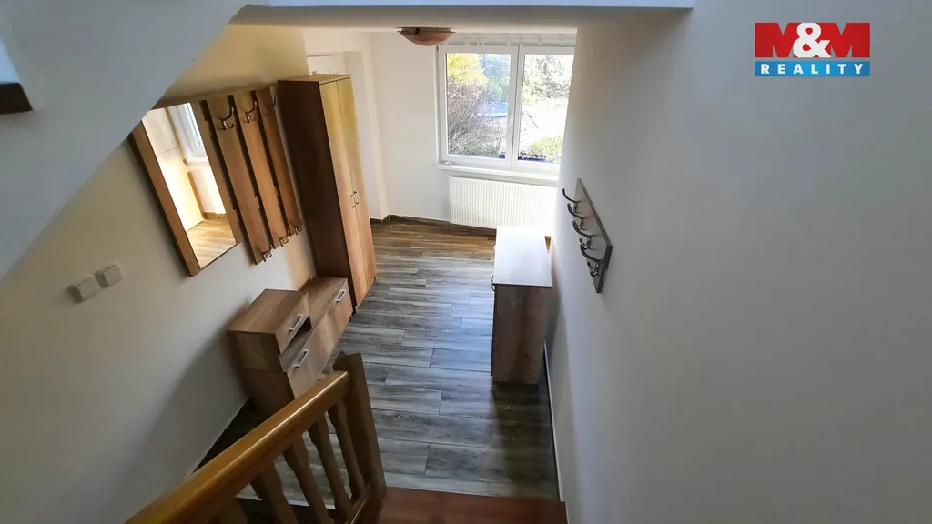 Nabízím k pronájmu byt ve 2. NP rodinného domu o dispozici 3+1 a velikosti cca 95 m2. Byt se skládá z kuchyně, obývacího pokoje se vstupem na balkon, z dvou ložnic, koupelny a samostatného WC. Z balkonu se schody dostaneme do zahrady, která je také k užívání a podmínkou pronájmu je starání o ní, tzn. sekání trávy a zastřihávání keřů. Na zahradě nalezneme herní prvky pro děti a velkou zařízenou pergolu.