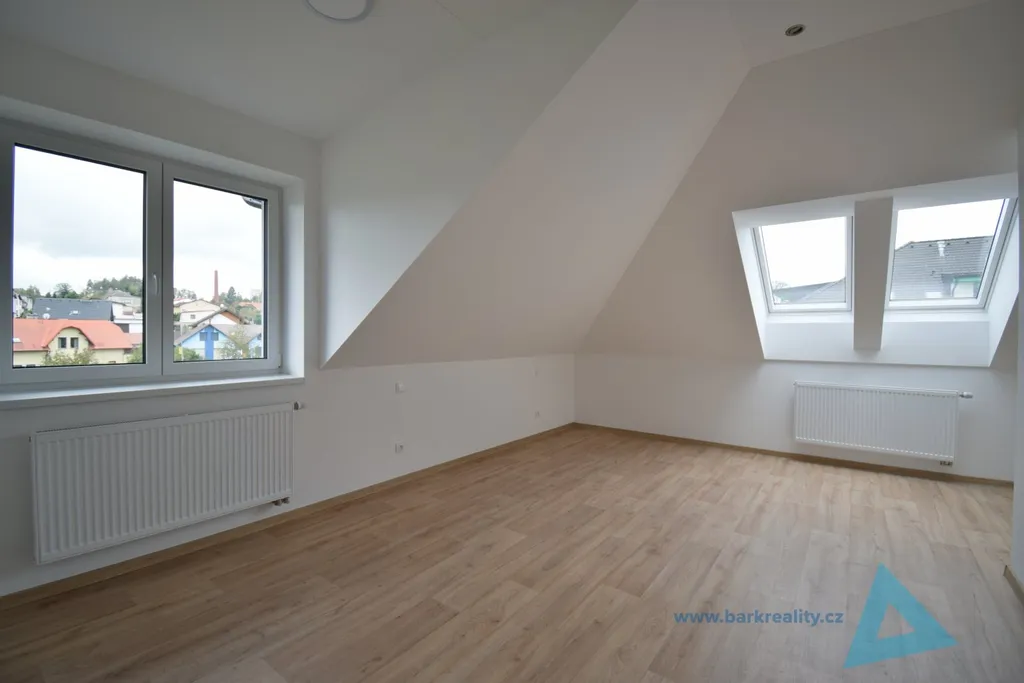 abízíme k pronájmu prostorný a světlý byt 1+kk o velikosti 47 m², který se nachází v podkroví novostavby cihlového domu s výtahem v žádané lokalitě Nové Paky, ulice Petra Bezruče.