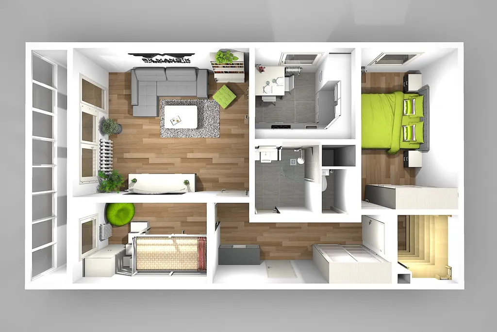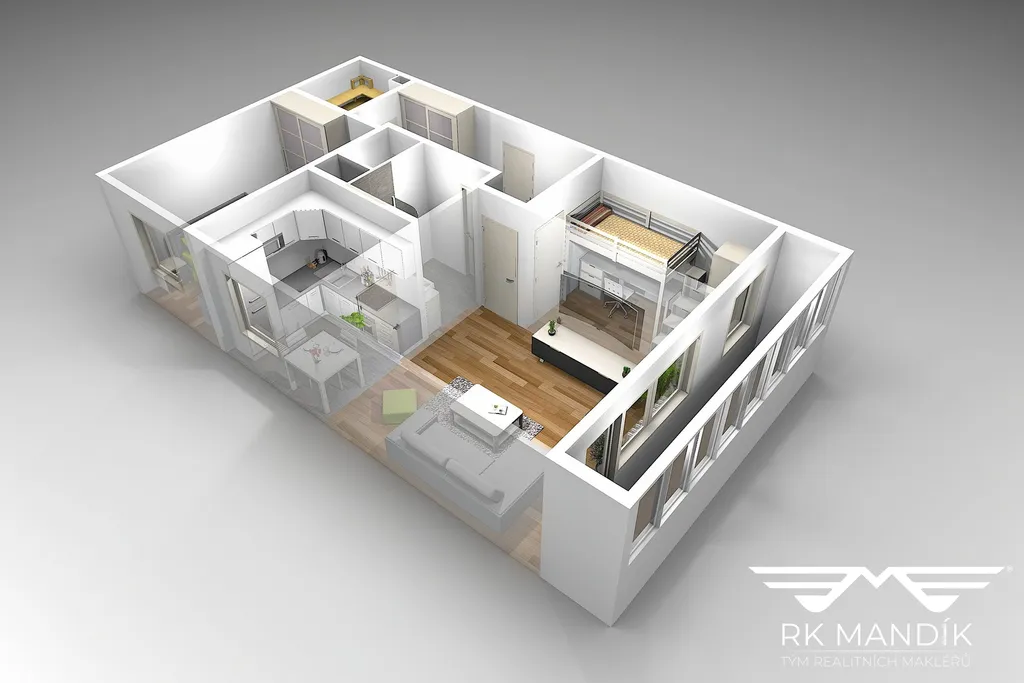 Nemovitost je po kompletní rekonstrukci a je připravena k okamžitému nastěhování. Dispozičně se byt skládá z obývacího pokoje se vstupem na zasklenou lodžii, samostatné ložnice, dalšího samostatného pokoje, kuchyně, koupelny, toalety a praktické komory s možností využití jako šatny. Součástí vybavení je nová kuchyňská linka značky IKEA osazená vestavnými spotřebiči, mezi které patří indukční varná deska, elektrická trouba, mikrovlnná trouba, kombinovaná lednice s mrazákem a digestoř s odvodem. Nechybí ani praktická pračka, která je vzhledem k velikosti koupelny umístěna v kuchyni.