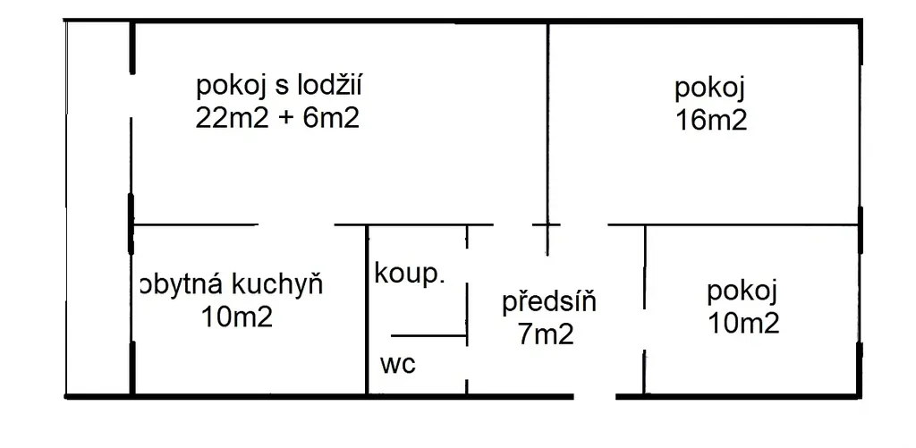 Koupelna s vanou. Samostatné WC. Komora. Sklep. Lodžie.