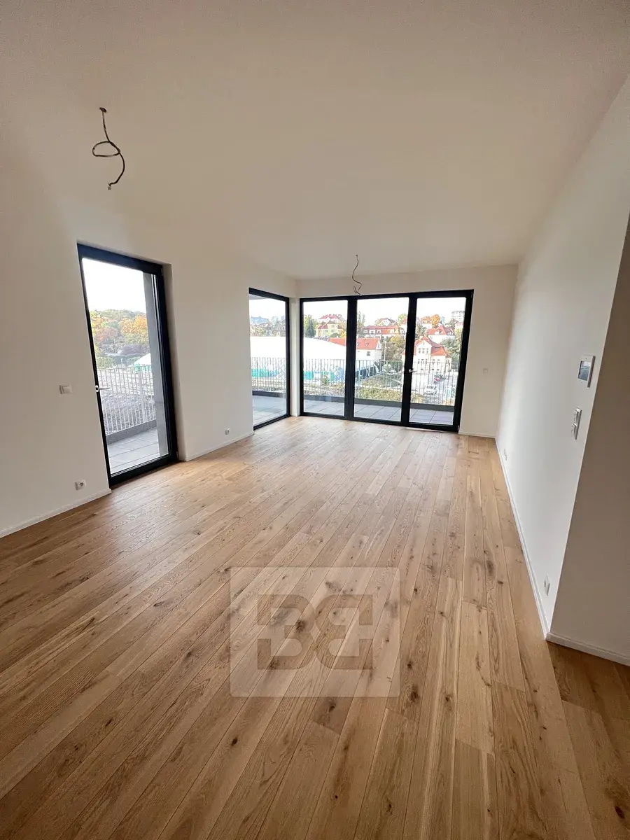 Interiér bytu je proveden ve vysokém standardu – v celém bytě jsou dřevěné podlahy, hliníková okna, rekuperace vzduchu. Ohřev tepla i teplé vody je řešen dálkově.