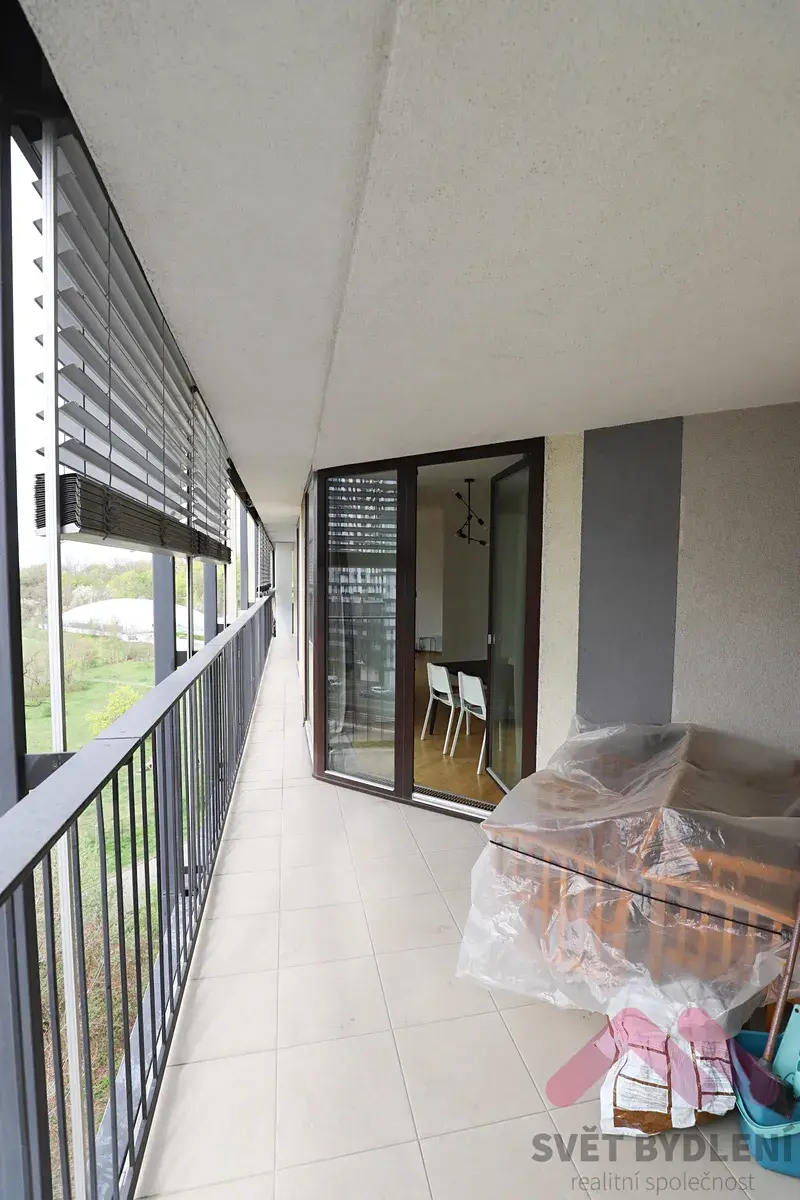 Ve výhradním zastoupení majitele nabízíme k pronájmu krásný byt, který se nachází v 8.patře novostavby bytového domu v unikátním projektu Central Park, který se nachází přímo u parku Parukářka. Byt je velice světlý (orientace na jiho-západ) a je vybaven kuchyňskou linkou s vestavěnými spotřebiči (sporák s horkovzdušnou troubou, myčka, lednička s mrazákem). Dále je k dispozici jídelní stůl se židlemi, vestavěné skříně v předsíni, pračka se sušičkou a nábytek na terase. Po dohodě s majitelem je možné do bytu dodat manželskou postel. Stínění bytu je zajištěno venkovními roletami s elektrickým posuvem. K bytu náleží parkovací stání, které je umístěno v suterénu domu. Dále je k dispozici sklep. Pouze obyvatelé tohoto projektu mohou využívat privátní park, který je přístupný přímo z domu. V komplexu Central Park je dále k dispozici recepce a restaurace. Volné od 28.2!