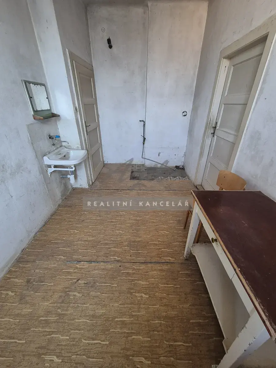 Chodbička 2 m2, samostatné WC 1 m2, koupelna 2 m2, kuchyně 10 m2, pokoj do ulice 16 m2, pokoj do zahrady 11 m2.