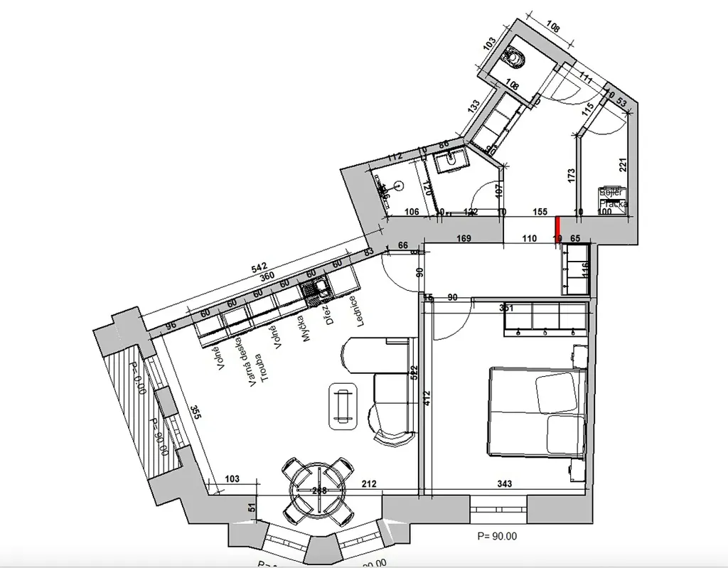 Jednotka sestává z vstupní chodby, která je velmi prostorná, technické místnosti s elektrickým bojlerem a prostorem pro pračku i sušičku, dále ložnice s krásným výhledem. Dominantou bytu obývací částí s kuchyní a jídelním koutem, která disponuje balkonem a je orientovaná na jihozápad a je tedy krásně osvětlená až do pozdních večerních hodin.