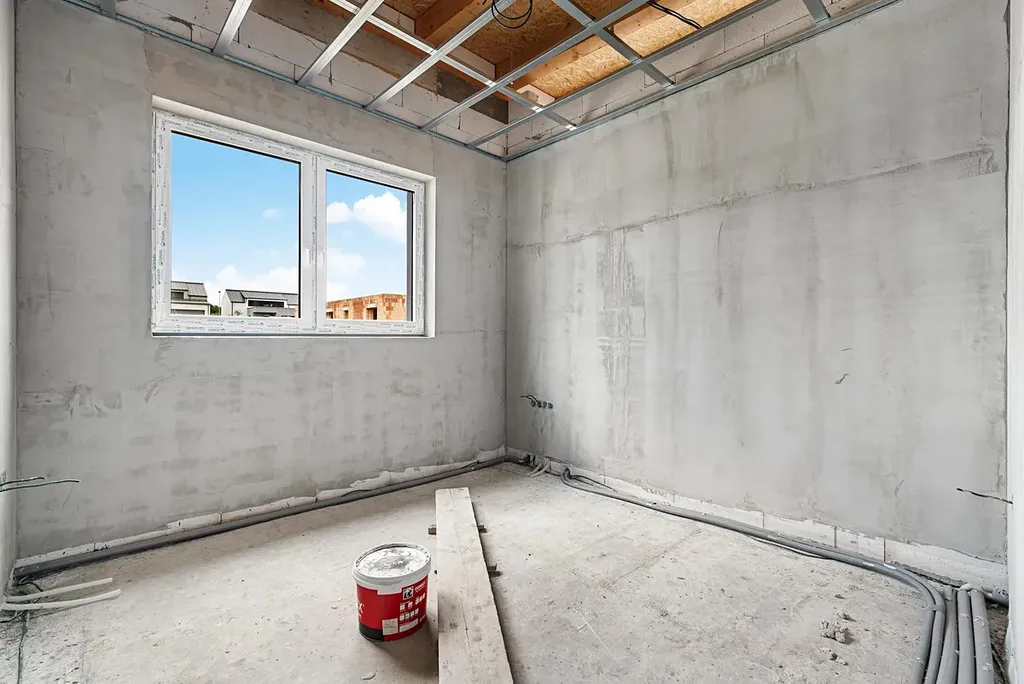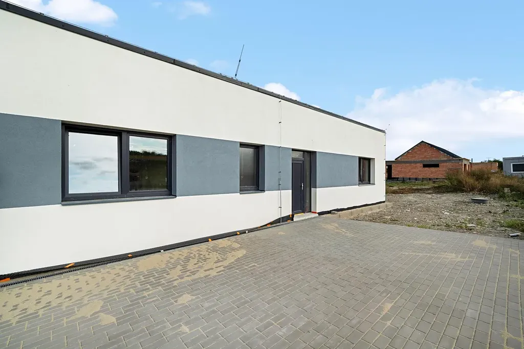 Dům má dokončený kontaktní zateplovací systém a fasádu. V současné době probíhá výstavba příček a vnitřních rozvodů. Ideální příležitost k tomu zvolit si dekor a interiér dle vlastních představ a přání.