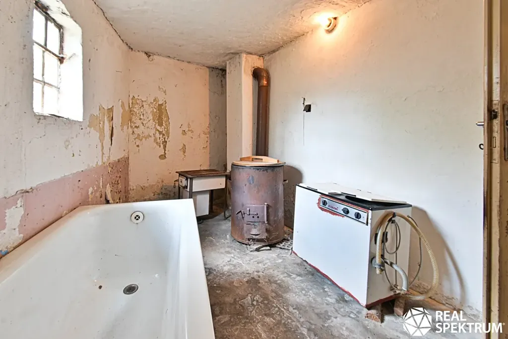Pak Vám tato nemovitost umožní provádět opravy a údržbu (je dost potřeba). Obytným základem je totiž 2+kk bez soc. zařízení, ale s mnoha hospodářskými prostorami.