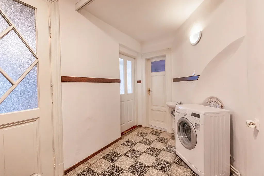 Byt je umístěn v prvním patře domu, pokoje jsou prostorné a slunné, na východ, kuchyně orientována do dvorního traktu. K bytu patří prosklená veranda na jižní části domu. WC je samostatné, koupelna s vanou, nový plynový kotel, ústřední topení.
