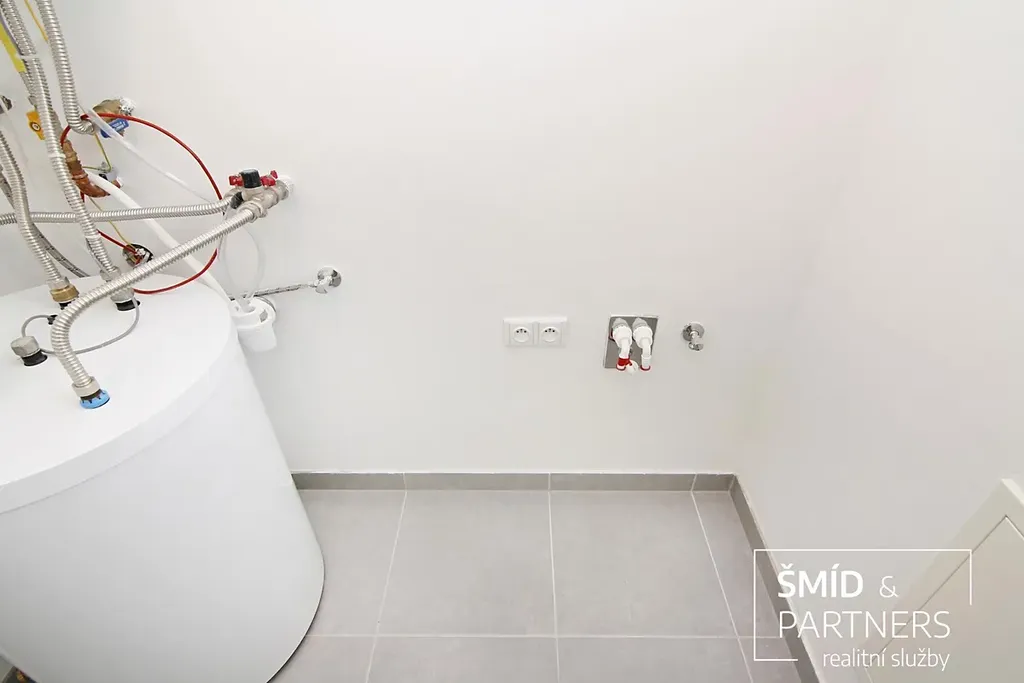 V celém bytě je položeno podlahové vytápění. Vytápění a ohřev teplé vody zajistí plynový kotel se zásobníkem umístěný v technické místnosti.
