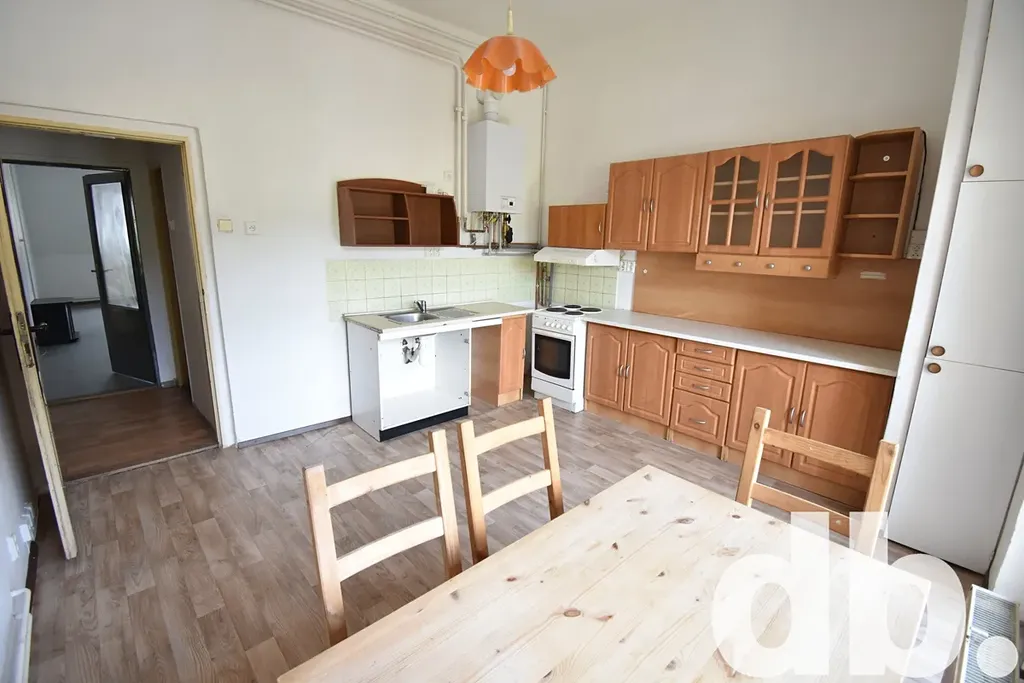 Nabízíme k prodeji prostorný mezonetový byt s dispozicí 3+1 s balkónem o výměře celkové podlahové plochy 120 m2 v dobovém bytovém domě umístěném na náměstí města Kraslice. Byt zaujme svým dispozičním řešením, které nabízí ve spodním podlaží kuchyň s balkónem, dva prostorné pokoje, sociální zázemí bytu a v horním patře pak další samostatnou místnost využitelnou jako ložnice nebo dětský pokoj, kdy k bytu zároveň náleží prostorný sklep o výměře 20 m2. V bytu byla provedena úprava bytového jádra s osazením nového sprchového koutu, dále byly instalovány nové rozvody vody, elektřiny a plynu spolu s instalací nového kombinovaného plynového kotle, který zajišťuje vytápění a ohřev vody. Byt nabízí pohodlné bydlení v centru města s bezproblémovým parkováním přímo za domem, doporučujeme.