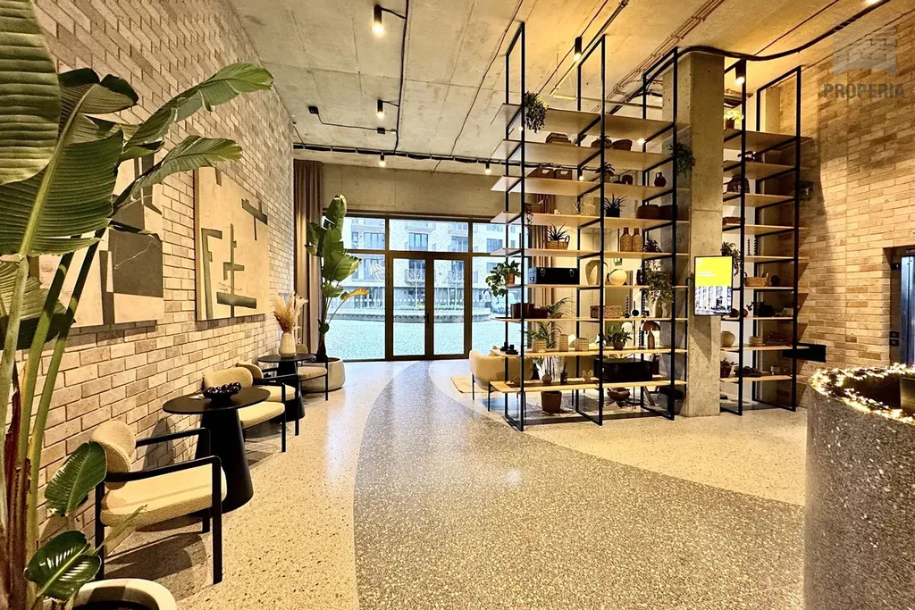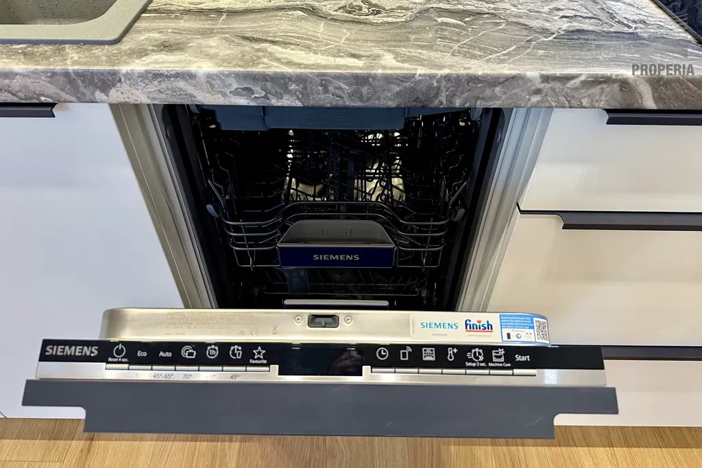Byt je vybaven kuchyňskou linkou na míru v moderních neutrálních barvách, spotřebiči jako myčka, lednice, digestoř, mikrovlnná trouba a pračka. Vestavná skříň v předsíni nabízí dostatek úložného prostoru. Koupelna je vybavena sprchovým koutem, závěsným WC, umyvadlem.