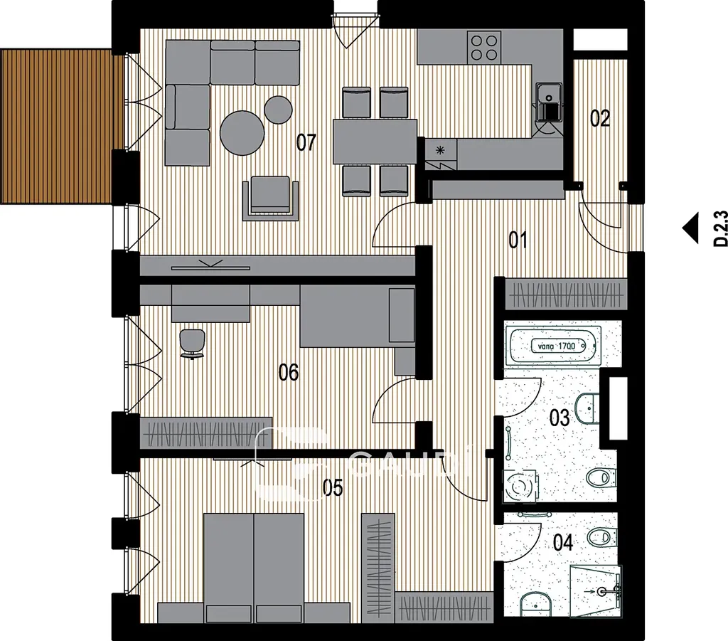 Disclaimer: Vizualizace interiéru slouží pouze pro lepší představu o možném vzhledu bytu. Nabízená jednotka není vybavená a je nyní ve výstavbě s plánovanou kolaudací na konec roku 2025.