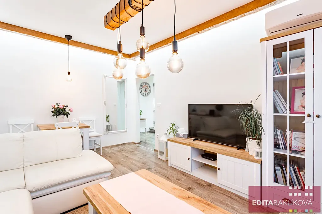 Nabízíme k podnájmu krásný byt po kvalitní a důmyslné rekonstrukci, díky níž se podařilo získat navíc malou ložnici a komoru.