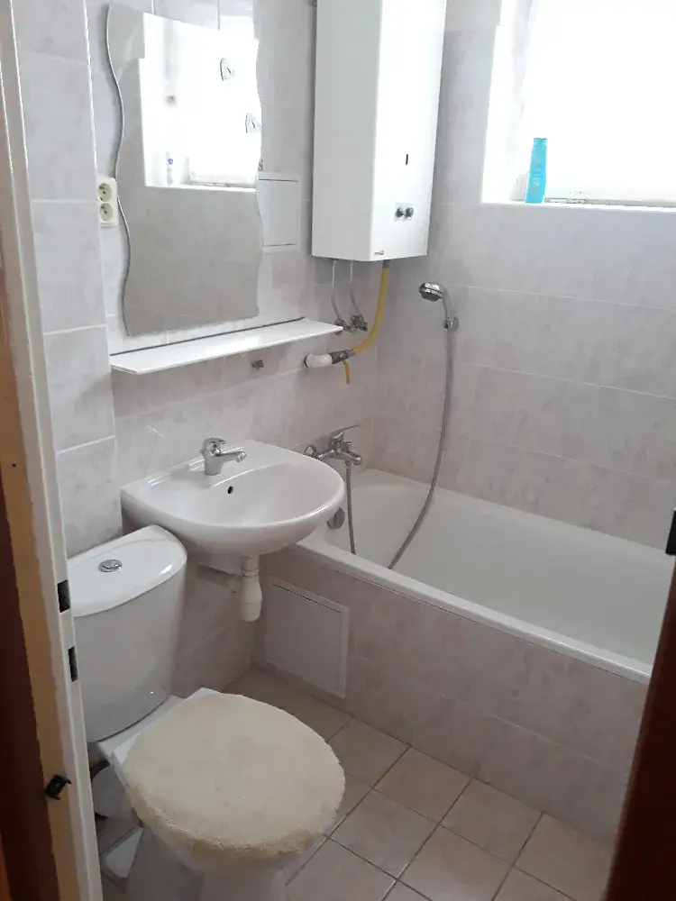 Vytápění je dálkové, ohřev vody plynem.