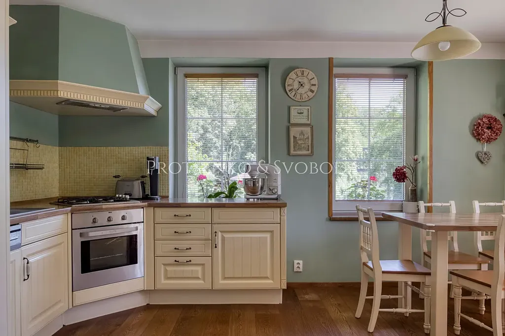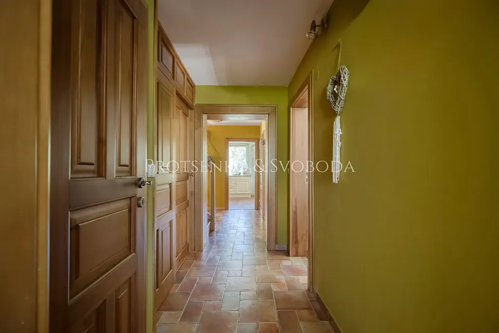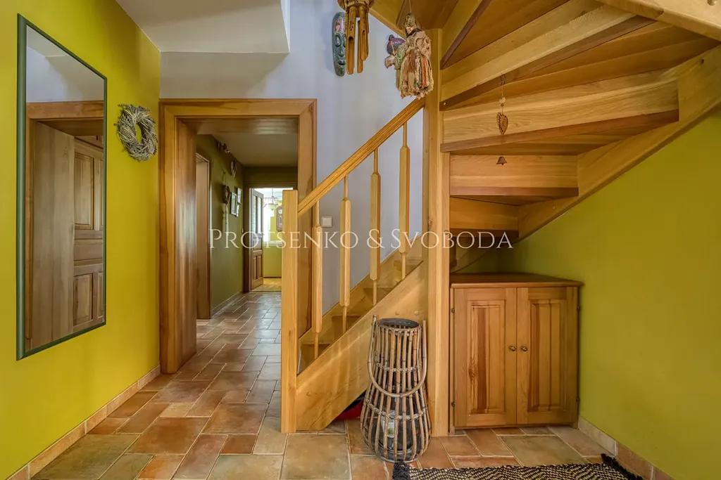 Chalupa prošla důkladnou a citlivou rekonstrukcí, která zachovala její charakter a zároveň přinesla pohodlí pro dnešní potřeby. Zateplená fasáda i střecha chrání dům před rozmary počasí, zatímco dubové podlahy nejvyšší kvality vnášejí do interiéru přírodní teplo a eleganci. Truhlářem na míru zhotovené dveře a rustikální kuchyně podtrhují vztah k tradici a ručnímu řemeslu.