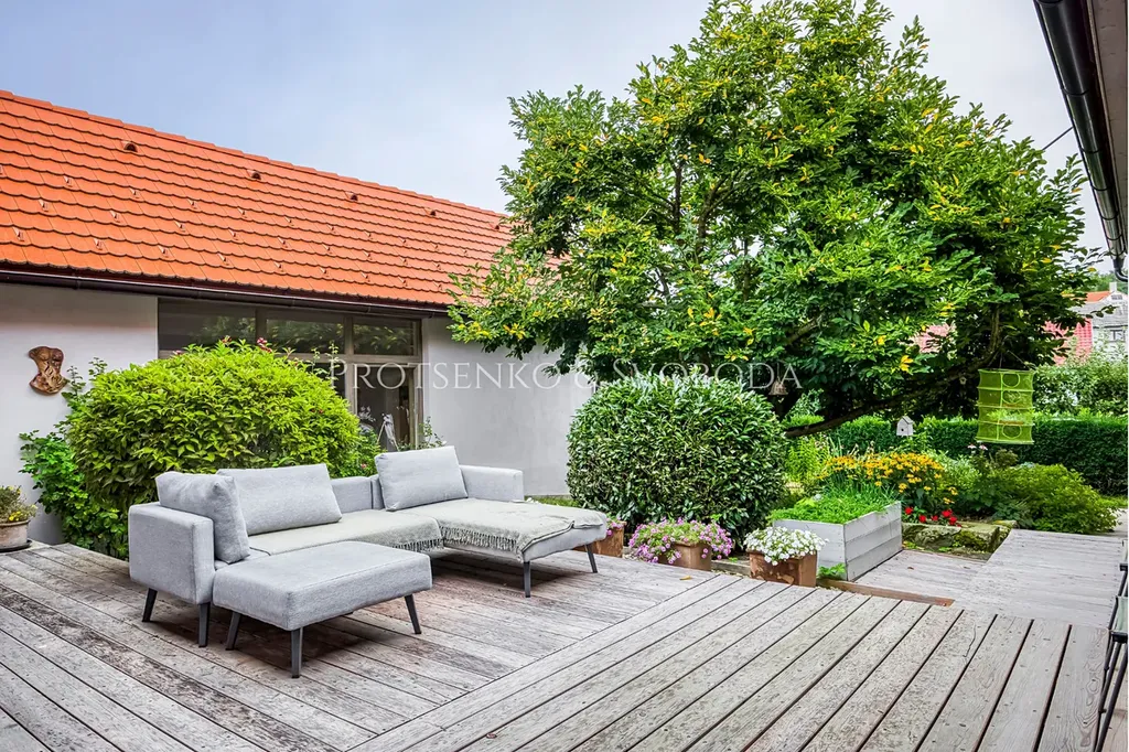 Jednou z největších přidaných hodnot této nemovitosti je rozlehlá a pečlivě založená zahrada, která vznikala více než půl století s citem a láskou místního umělce. Do prostoru vtiskl svůj osobitý rukopis a dodnes tu zůstaly jeho stopy – jemné detaily ukryté mezi stromy, v trávě i u jezírka a výsledkem je jedinečné dílo přírody i lidské tvořivosti.