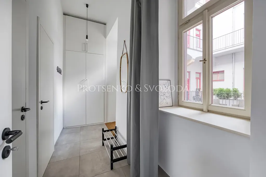 Realitní kancelář Protsenko & Svoboda vám nabízí k prodeji kompletně zařízený byt o dispozici 2+kk a podlahové ploše 53 m², k němuž náleží předzahrádka o velikosti 20 m² a sklepní kóje 2 m². Uvedená celková plocha 73 m² zahrnuje podlahovou plochu bytu 53 m² a poměrnou část předzahrádky 20 m², aby bylo srovnání s jinými nabídkami jednodušší a přehlednější. Nemovitost je situována v jedné z nejžádanějších pražských čtvrtí – Karlíně, který je dnes považován za stylové a módní centrum metropole.