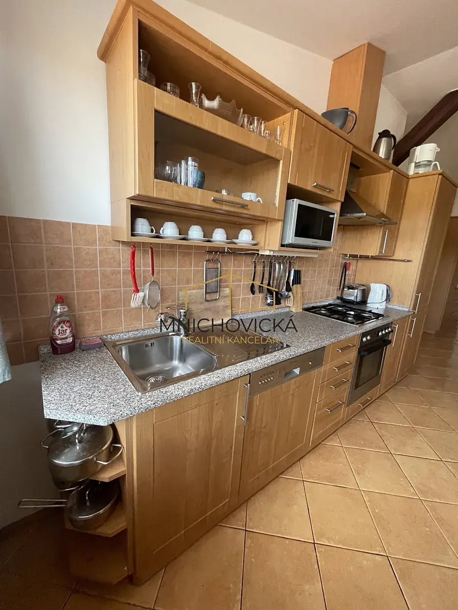 Nabízíme krásný, prostorný a prosvětlený byt č. 3 o dispozici 3+kk s možností využití společné terasy. Byt je umístěn v 1. nadzemním podlaží. V bytě se nachází kompletně vybavená kuchyň se sporákem, digestoří, mikrovlnnou troubou a lednicí. Koupelna je velice prosvětlená a je vybavena pračkou a sušičkou - viz fotografie. Dále byt vyniká prostorným obývacím pokojem. Domácnost je řešena tak, aby nabídla dostatek prostoru pro jednotlivce, pár i rodinu.