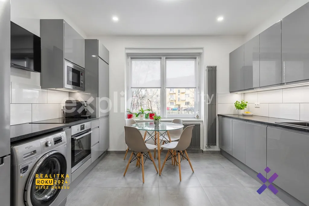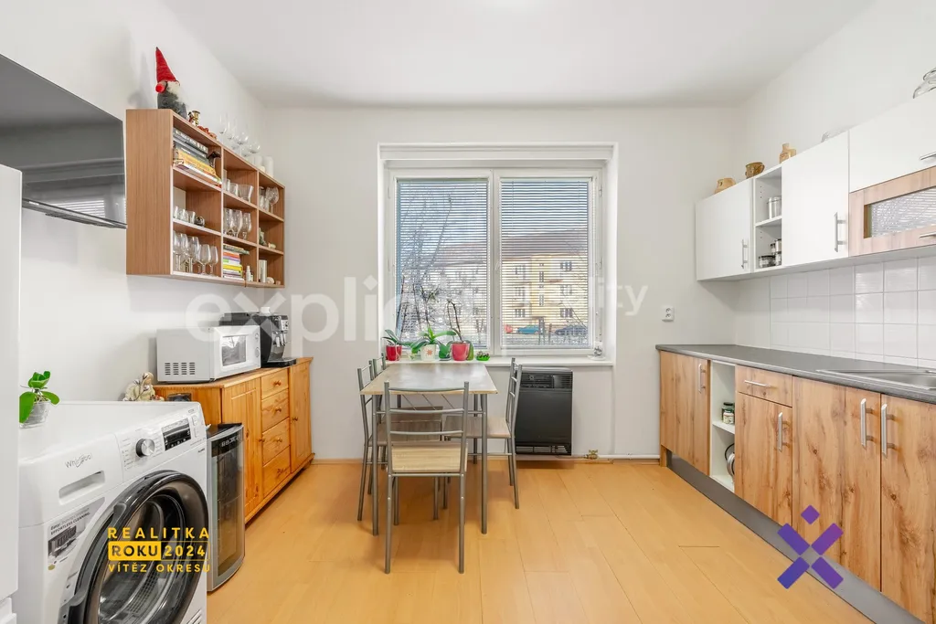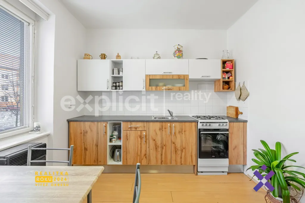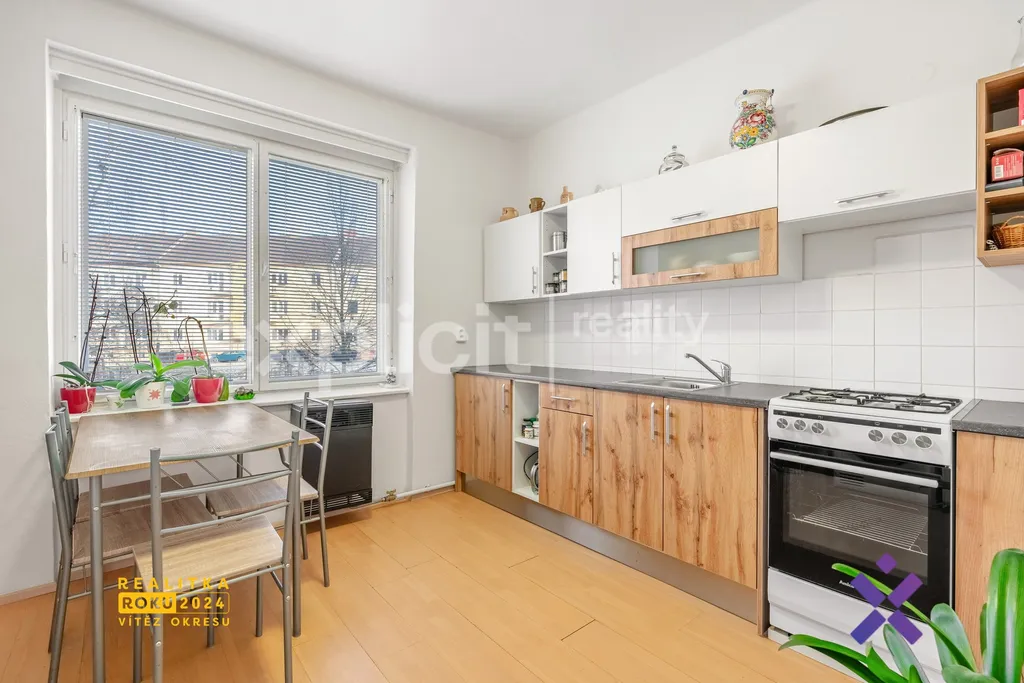 Byt prošel částečnou rekonstrukcí - k dispozici je nová kuchyňská linka vybavená plynovým sporákem. Kuchyňský prostor nabízí také místo pro jídelní stůl.
