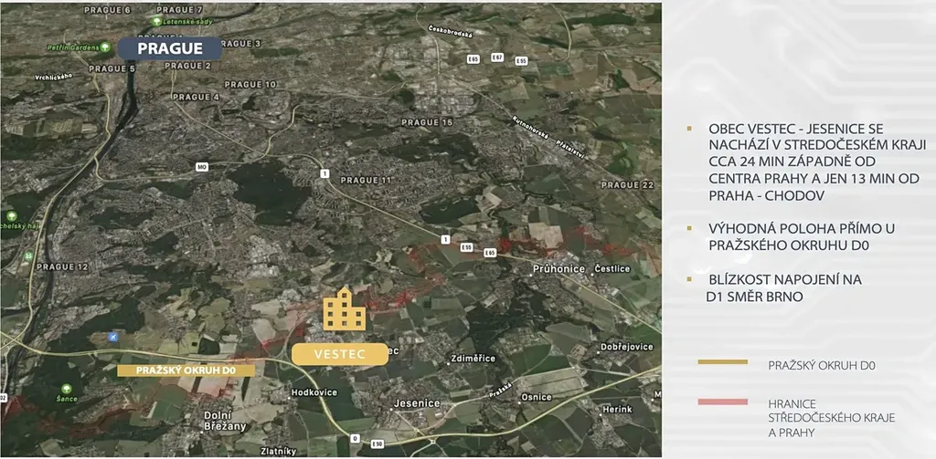 Poloha projektu v těsné blízkosti u D0 zaručuje výbornou dostupnost a bezproblémovou logistiku. Lokalita je tak velmi dobře dostupná nejen osobním ale hlavně nákladními automobily. Povolené výšky staveb poskytnou jak dobrou viditelnost v okolí, tak budoucí flexibilní uspořádání.