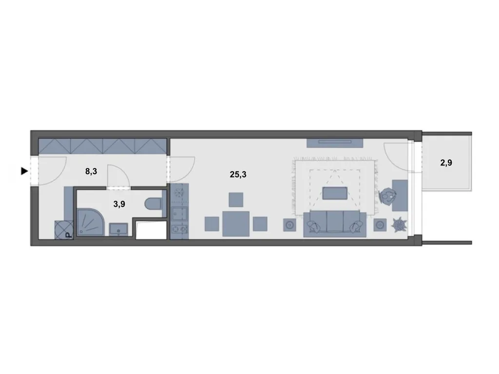 • Předsíň 8,3 m² (místo na vestavnou skříň + pračku)