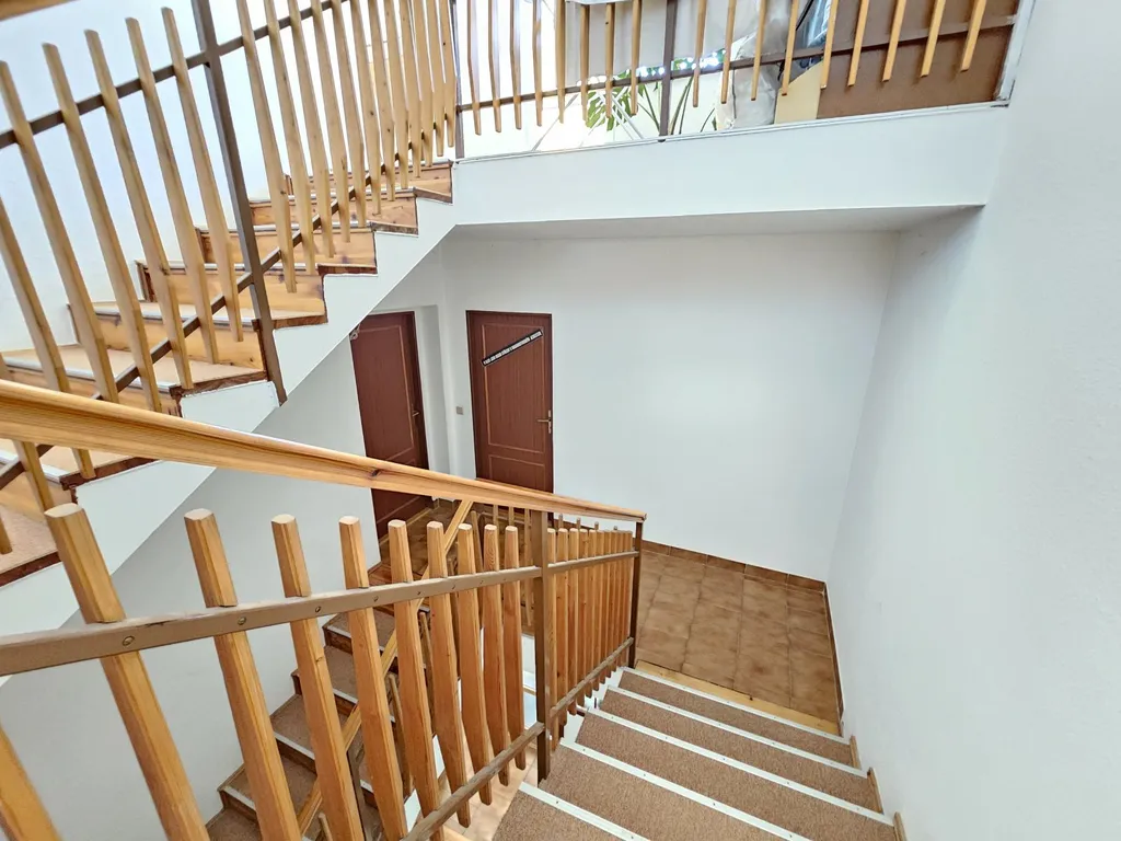 Prostorná vstupní chodba s navazujícím schodištěm.