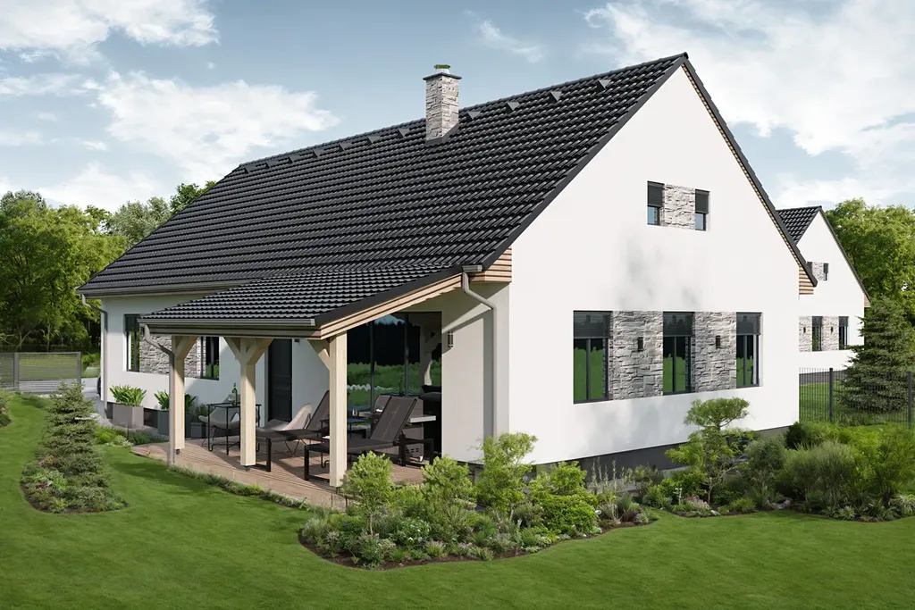 Každý dům bude postaven jako kvalitní dřevostavba s betonovou základovou deskou a bude disponovat: