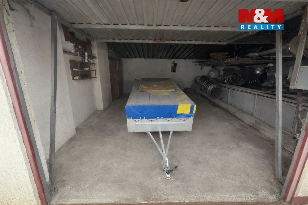 Garáž je v družstevním vlastnictví, jedná se o zděnou řadovou garáž. Je napojena na elektřinu s vlastním elektroměrem. Vjezd zajišťují vyklápěcí plechová vrata, střecha je z vlnitého plechu.