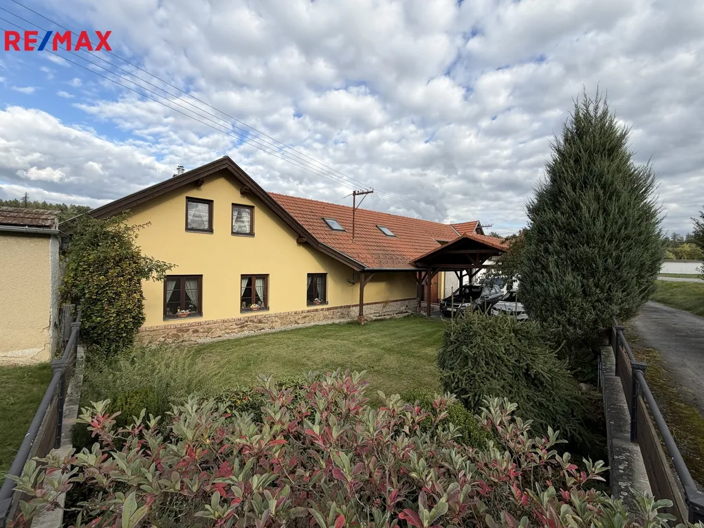 Nabízíme k prodeji krásný rodinný dům po rekonstrukci s praktickým uspořádáním a možností variabilního využití. Dům nabízí pohodlné bydlení i dostatek úložných prostor v dostupné vzdálenosti 6 km do Pelhrimova vše na pozemku o celkové výměře 3.192m2. Multifunkční stavba prošla v roce 2001 generální rekonstrukcí s chytře navrženým využítím spojujícím dvougenerační bydlení (3+1 a 4+1 ) nebo podnikání s bydlením. Dům je dispozičně tvořen v přízemí vstupní předsíní 5m2, halou 34m2, komorou 2m2, chodbou 3,39m2, WC 2,06m2, koupelnu 19,12m2, sušárnou 10,2m2 spíží 3,66m2, kuchyní 5,80m2, obývacím pokojem 27m2, ložnicí 19,12m2 a šatnou 14,62m2. v podkrovní části se nachází 4 pokoje (47,5m2, 14m2, 16,2m2, 31,7m2) dále chodba 31,3m2, kuchyně 9m2, WC 2,16m2, koupelna 9,6m2, komora 3,12 a schodiště 12,5m2. Před domem se nachází dvě krytá stání, v uzavřeném dvoře jež nabízí absolutní soukromí a průjezd do zahrady se nachází stodola využitelná jako garáž s navazující dílnou i WC. V zahradě je skladový domek 57m2. Vytápění je řešeno novým automatickým kotlem 25KW na pelety nebo dřevo s akumulační nádrží 1000l, druhým zdrojem je plynový kotel napojený na vlastní podzemní nádrž Propan-Butan. Veškeré ovládání topení je přes telefon. Dům je napojen na obecní vodovod, odkanalizování je svedeno do septiku s přepadem. Elektřina 230/400V, napojení na telefonní linku, TV, WIFI, zabezpečení Jablotron s napojením na PCO. Horní i spodní část domu klimatizována. V obci se nachází škola i školka s družinou. Dům je ideální pro rodiny, které hledají dostatek prostoru a komfort v kombinaci s klidným prostředím. Možnost využití půdních prostor dle vlastních představ – například jako další bytová jednotka, pracovna či sklad. Neváhejte nás kontaktovat pro více informací a prohlídku.