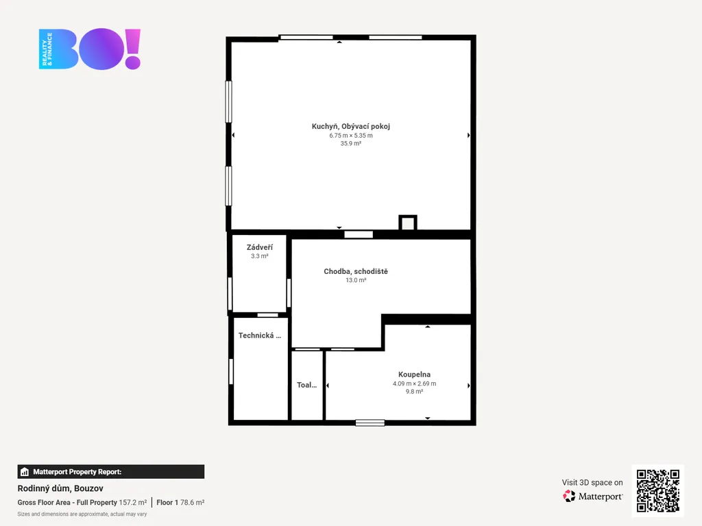 Dům nabízí dispozici 4+kk s užitnou plochou 146 m², rozloženou do dvou podlaží.