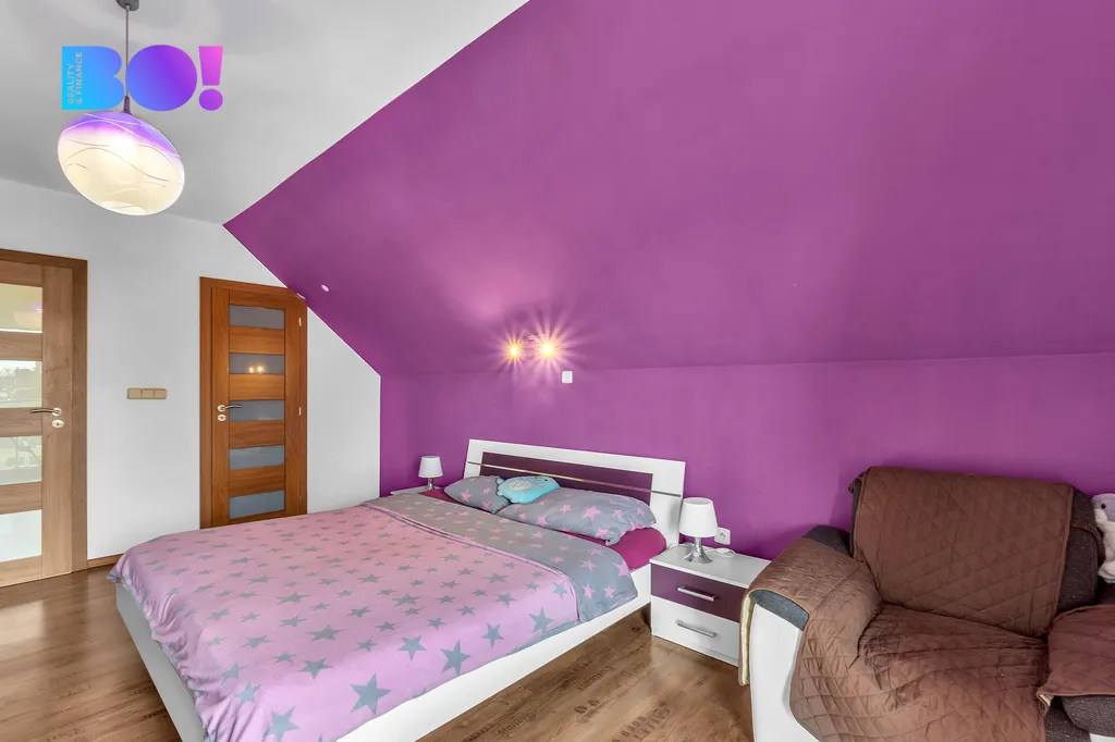 • Patro: ložnice s šatnou a vstupem na balkon, 2x dětský pokoj, WC.