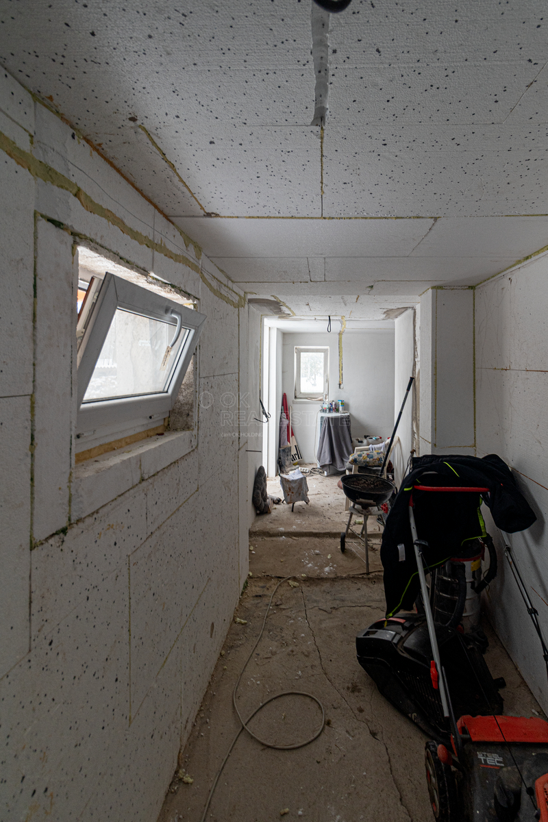 Nemovitost je ve stavu právě probíhající rekonstrukce, s výhlídkou nynějšího majitele na trvalé bydlení. Dispozičně je řešena obytnou místností s otevřeným krbem v dolní části a dvěma pokoji v podkrovní části se sedlovou střechou. V dolní části se pak nachází sklep.