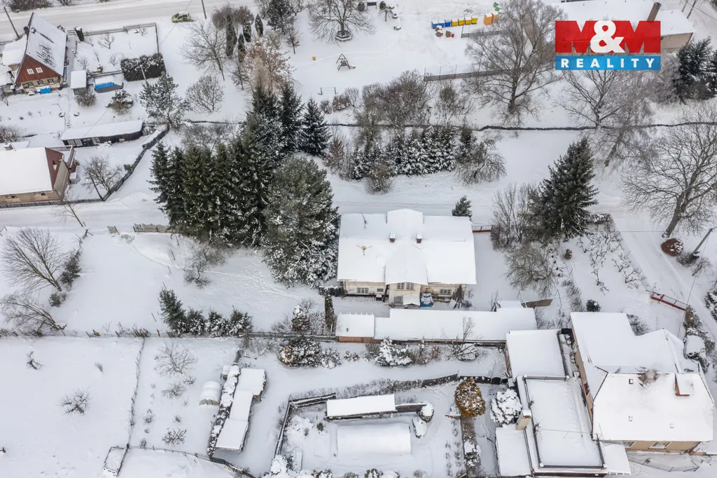 V přízemí se nachází dispozice 3+1, koupelna, samostatné WC a vstup do sklepa. V 1. patře jsou 2 prostorné pokoje, koupelna a 3 půdní prostory. Celková užitná plocha domu činí cca 210 m², podlahová plocha obytných místností cca 120 m².