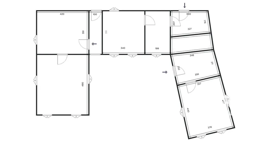 1. obytná jednotka (2 místnosti ve zvýšeném přízemí)