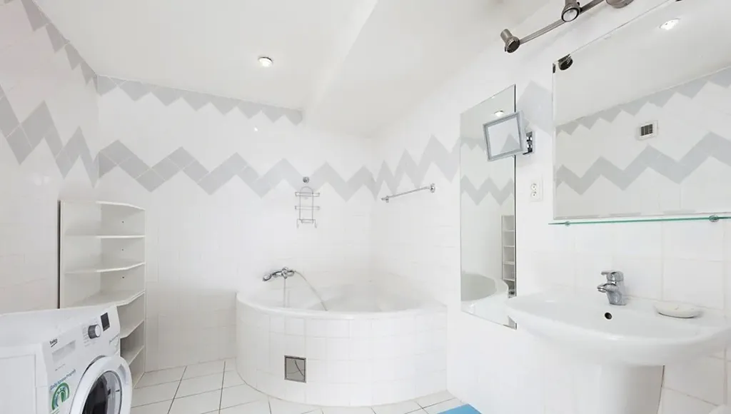 Za zmínku stojí také tři koupelny – dvě plnohodnotné a jedna menší, pracovně-technická. Tento nadstandard výrazně zvyšuje komfort bydlení a ocení jej zejména početnější rodina nebo náročnější nájemníci.