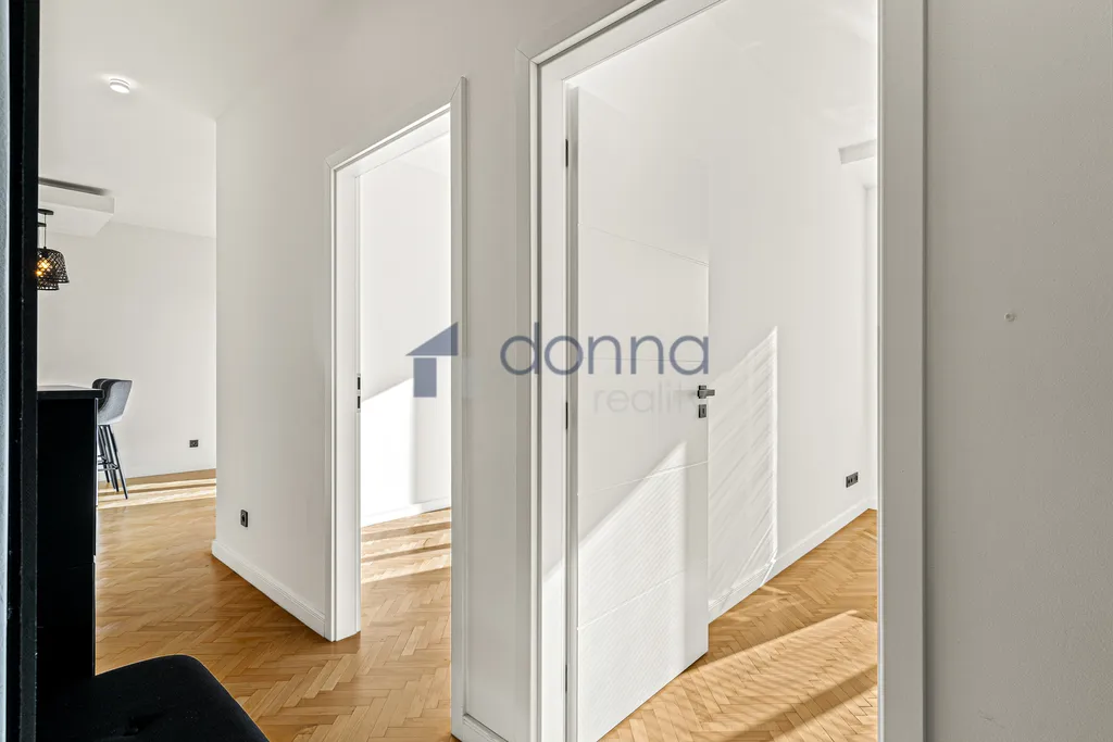 Byt prošel v roce 2024 vkusnou a kvalitní rekonstrukcí s důrazem na moderní design, funkčnost a použití hezkých, nadčasových materiálů. Součástí vybavení je kuchyňská linka včetně spotřebičů (lednice, myčka). Dispozici doplňují dvě samostatné ložnice o ploše cca 10 m², moderní koupelna se sprchovým koutem, pračkou a toaletou. Podlahy tvoří dřevěné parkety a designová dlažba, vytápění je řešeno elektrickými konvektory.