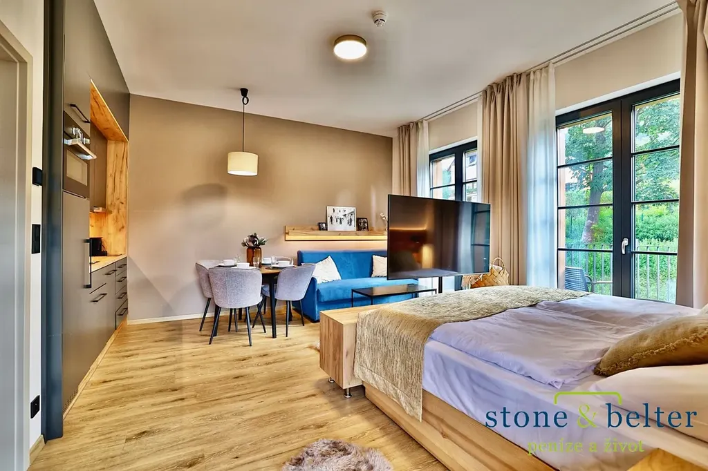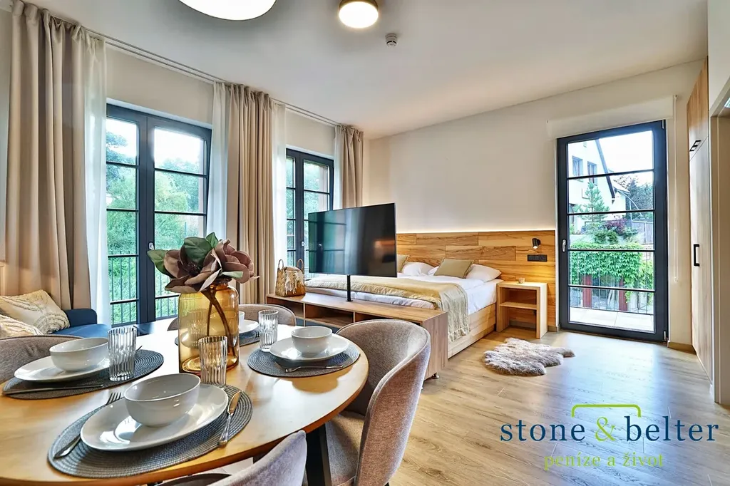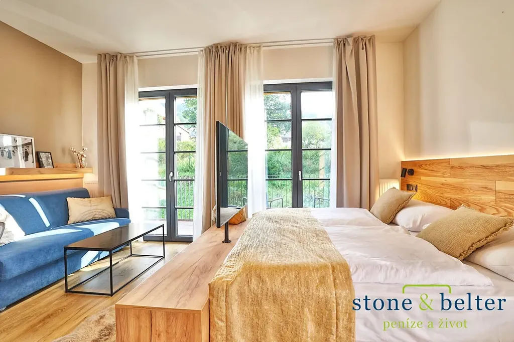 Nabízíme k prodeji výjimečný apartmán 1 + kk o podlahové ploše 39,4 m², který se nachází v prestižní lokalitě Černý Důl, jedné z nejvyhledávanějších horských obcí v Krkonoších. Tento apartmán disponuje balkonem o rozloze 23,4 m², z něhož se nabízí nádherný výhled na okolní přírodu a hory, což přispívá k jeho atraktivitě pro potenciální investory. Orientace na jih a východ zajišťuje maximální prosvětlení interiéru prostřednictvím francouzských oken, která umocňují elegantní a nadčasový design celého prostoru.