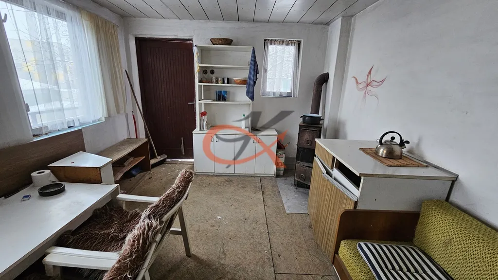 Jedná se o stavbu s pultovou střechou, pokojem vytápěným kamny a s balkonem v přízemí a s místností a 2 sklepy v suterénu. V katastru je nemovitost vedená jako trvalá hospodářská budova. Voda je dostupná z vrtané studny na zahradě, elektřina je v rohu pozemku (již zajištěno věcným břemenem a možností připojení). Pozemek je v horní části svažitý, celo oplocený a s obecní příjezdovou cestou až k pozemku. Před chatou je pozemek rovný a krytý zelení, vhodný pro rodinné aktivity, posezení a např. pro dětské hřiště, bazének apod. Na zahradě jsou ještě 2 drobné stavby - kurník a suché WC.