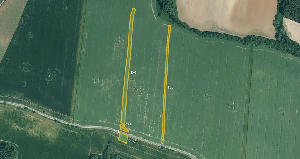 Nabídka zahrnuje následující parcely: 166, 184, 290, 291, 292/1 a 382/2.