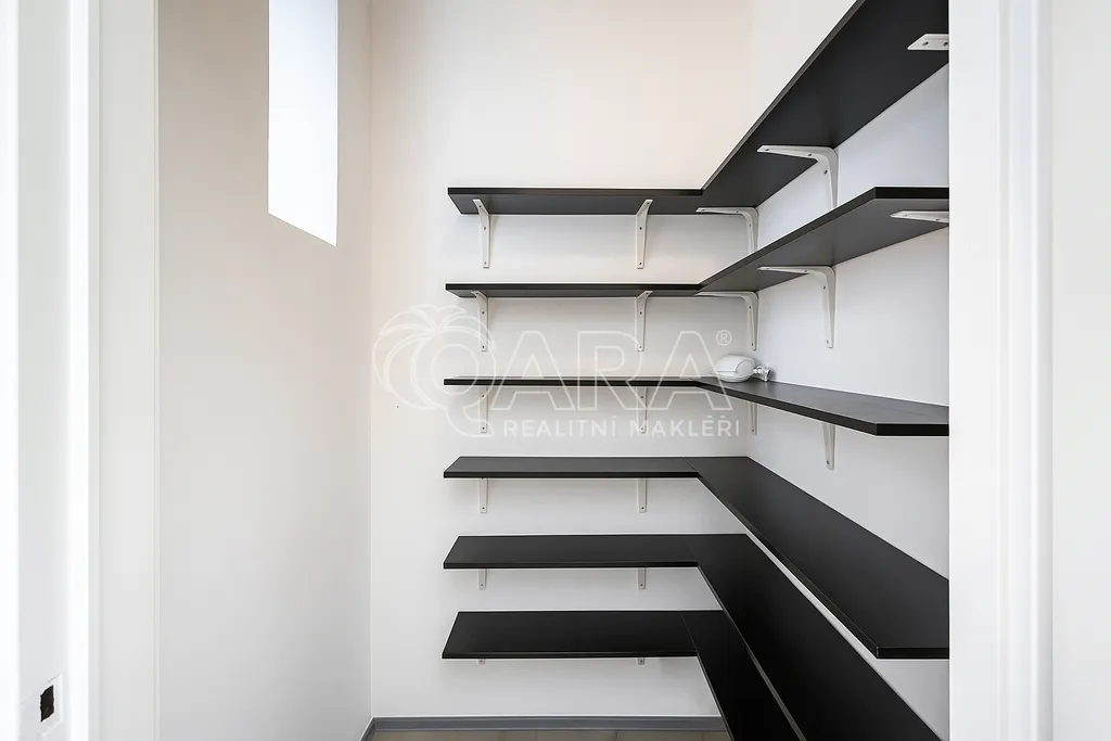 Byt se nachází ve 4. patře udržovaného domu s výtahem. Vstupní a spojovací hala, 3 prostorné ložnice, obývací pokoj, kuchyň s kuchyňskou linkou (lednice s mrazákem, sporák, trouba, digestoř a myčka). Dvě koupelny: koupelna s vanou a sprchovou zástěnou, dvojumyvadlem a WC, samostatné WC, koupelna se sprchovým koutem, umyvadlem a pračkou se sušičkou. K dispozici je také komora, balkon do klidného dvora se zelení a sklep.