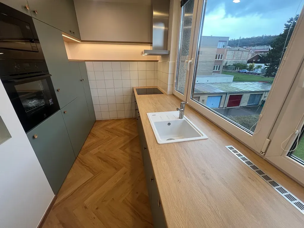 Nabízíme Vám k dlouhodobému pronájmu luxusní nový, ještě nebydlený byt 2+kk s lodžií, v 2. patře cihlového domu, obklopeného krásnou zahradou v klidné lokalitě Radotína s bezproblémovým parkováním i výbornou dopravní dostupností do centra. Byt prošel kompletní rekonstrukcí, má k dispozici novou kuchyňskou linku s indukční varnou deskou, elektrickou troubou, lednicí s mrazákem, mikrovlnkou a myčkou, v koupelně sprchový kout, samostatné WC. Světlý obývací pokoj s lodžií a okny na sever a lodžií na jih. Na všech oknech žaluzie. Ústřední vytápění, ohřev vody boilerem. Dostatek nových vestavných skříní jak v ložnici, tak v předsíni. K bytu náleží sklep. Výborná dopravní dostupnost. Zastávka busu i vlaku 5 min od domu dojezd na metro Smíchovské nádraží do 10 min. Veškerá občanská vybavenost v přímém okolí. Billa a Penny 3 min od domu. Volné ihned. Určeno k dlouhodobému pronájmu ideálně pro pár nekuřáků bez domácích mazlíčků. Doporučujeme prohlídku.