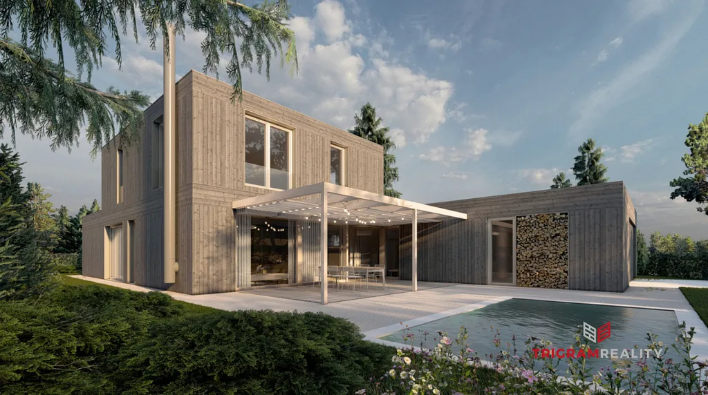• Luxusní vybavení: Dům bude zahrnovat venkovní žaluzie, tepelné čerpadlo pro vytápění a prostornou terasu. Bude také možnost přidání sauny a dalších prvků.