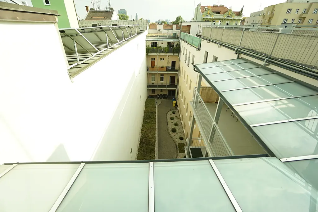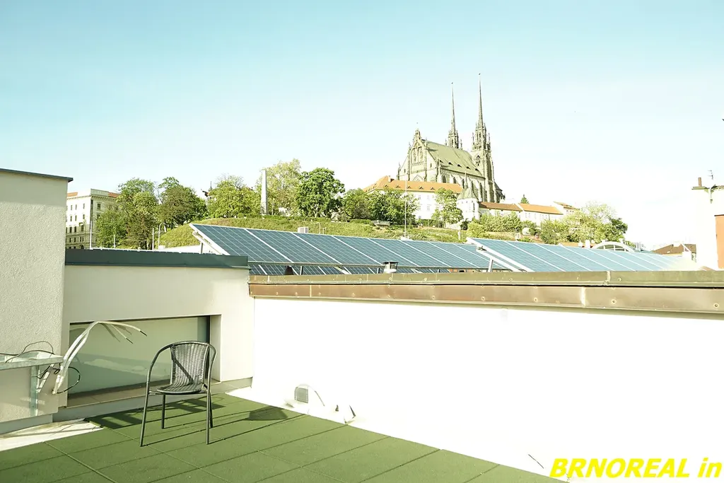 Jednotka disponuje možností užívání společné terasy umístěné na střeše bytového domu, z které je možno pozorovat nerušeně ruch velkoměsta. Terasa je ideálně stvořená ke grilování, opalování a relaxu s nádherným panoramatickým výhledem na nejen dvě největší dominanty města Brna – Katedrálu svatého Petra a Pavla, obklopenou příjemnou parkovou zelení Denisových sadů a hrad Špilberk.