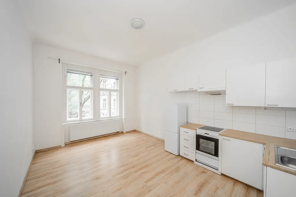 Zrekonstruovaný, hezký byt 2+kk o celkové rozloze 48 m2, situovaný v 1. patře rezidenčního domu s výtahem ve vyhledávané pražské části Vinohrady, ulice Korunní. Dispozice bytu sestává z obývacího pokoje s kuchyňským koutem, ložnice situované do tichého vnitrobloku, koupelny se sprchovým koutem a oddělené toalety. Kuchyňský kout je vybaven spotřebiči (lednice, trouba, sporák). Byt je ekologický, plně elektrifikovaný elektrickým kotlem, který slouží na vaření, vytápění i ohřev vody.