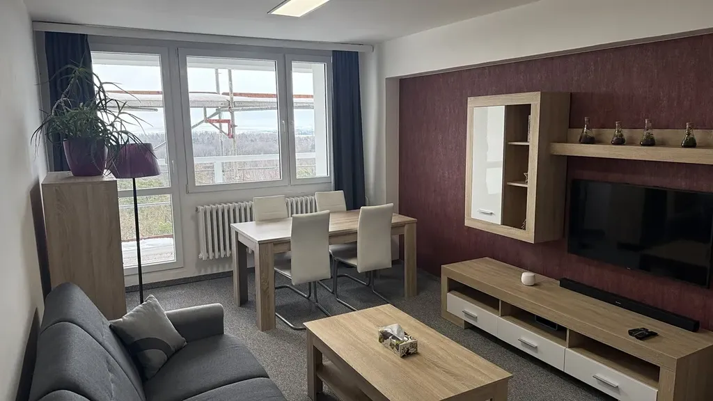 Parkování je možné na parkovišti vedle domu nebo v přilehlých ulicích. Lokalita nabízí veškerou občanskou vybavenost a špičkovou dopravní dostupnost díky blízkosti dálnic D7 (7 km) a D6 (4,4 km). Byt je vhodný jak pro rodiny s dětmi, tak jako bezpečná investice
