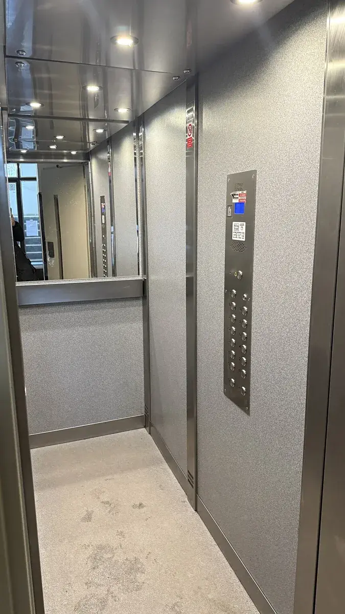 Přístup do bytu vede přes uzamykatelnou chodbu oddělenou od výtahů a schodiště, v domě jsou dva prostorné nové výtahy.