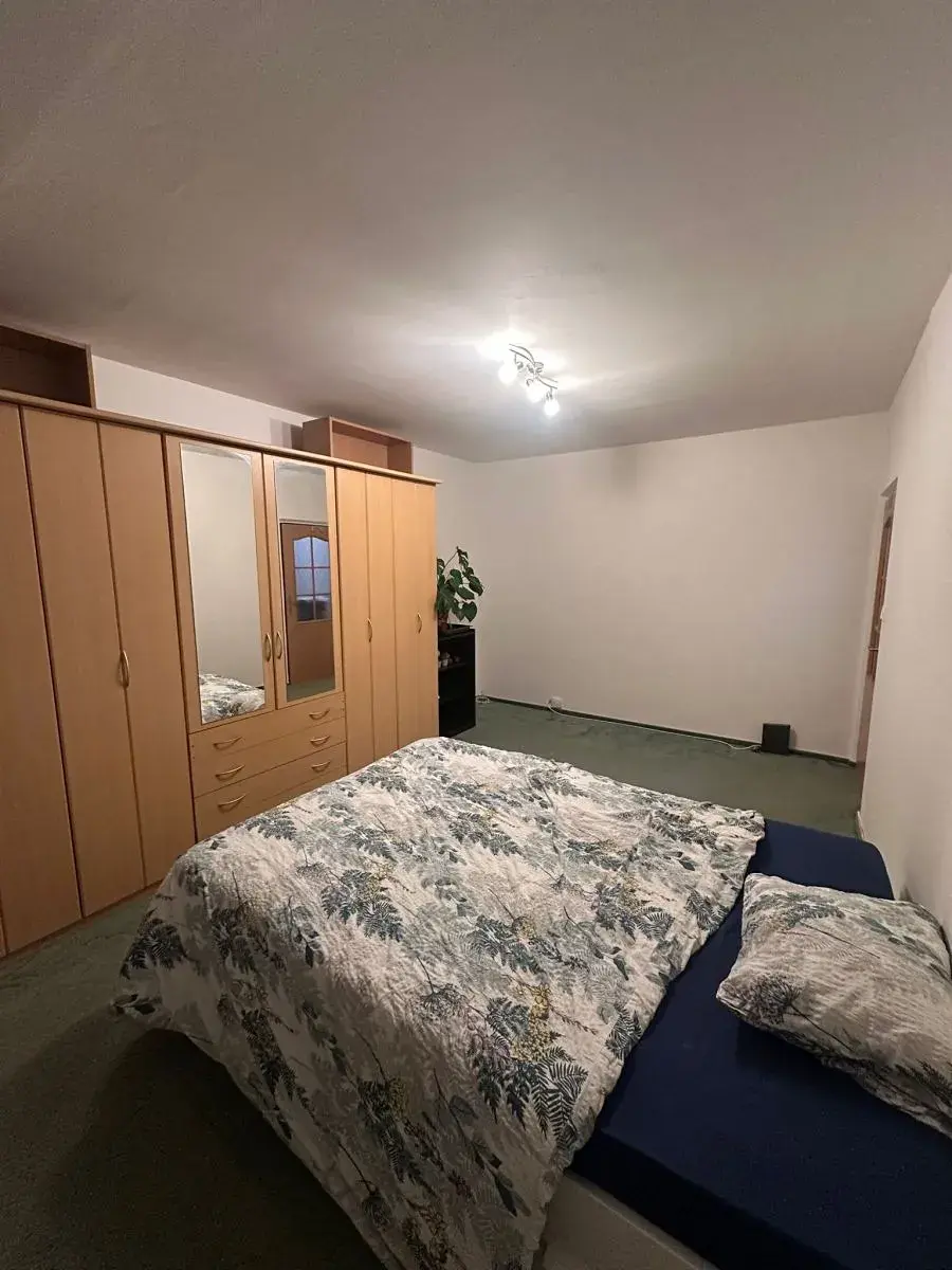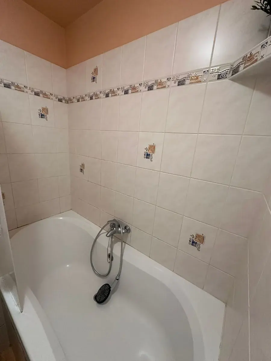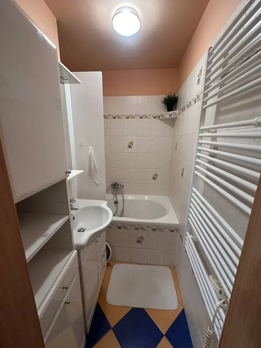 skříň, obývací stěna, pračka, vana, oddělené WC. Výměra bytu činí