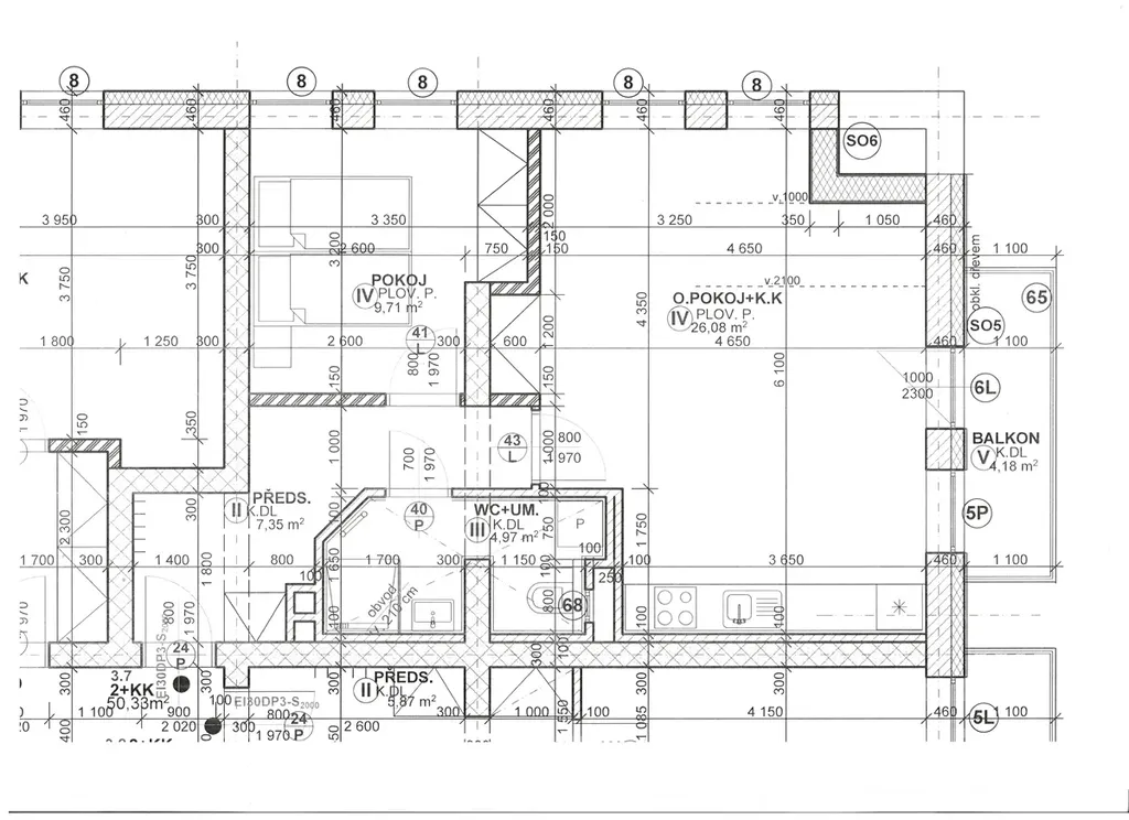 Tento byt zde uvádíme jako modelový, v prodeji jsou ještě další byty 2+kk umístěné v různých podlažích domu. K dispozici jsou pro Vás také byty 1+kk.