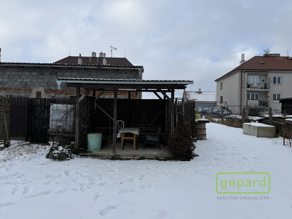 V zadní části pozemku je k dispozici soukromé venkovní posezení a pole, které je výhradně k užívání nájemců bytu – ideální místo pro relax, zahradničení nebo letní posezení.